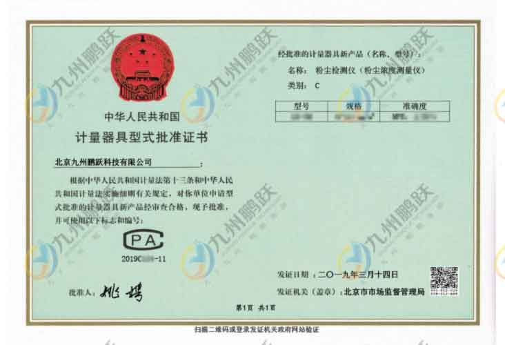 計量器具型式批準證書