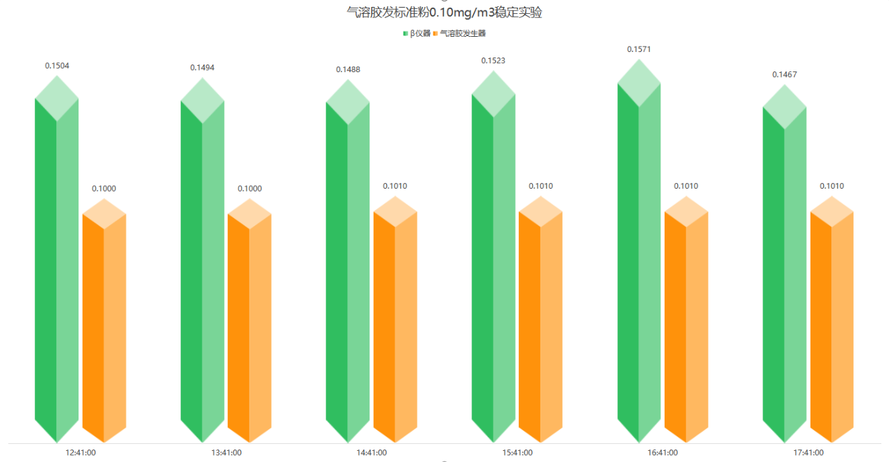 在 0.10mg/m? 的 A2 粉穩(wěn)定實驗中,經(jīng)過多次重復測量,基準儀器 β 的重復性誤差為 0.428%。根據(jù)相關國家標準,此類儀器的重復性誤差允許范圍為 ±2%,0.428%<±2%,這表明在該濃度下,β 射線粉塵監(jiān)測儀測量數(shù)據(jù)的離散程度極小,能夠保持高度的一致性,進而反映出 QRJ-400 便攜氣溶膠發(fā)生器在產生 0.10mg/m? 濃度的氣溶膠時,具有出色的穩(wěn)定性,可為相關測量儀器提供可靠的校準源。